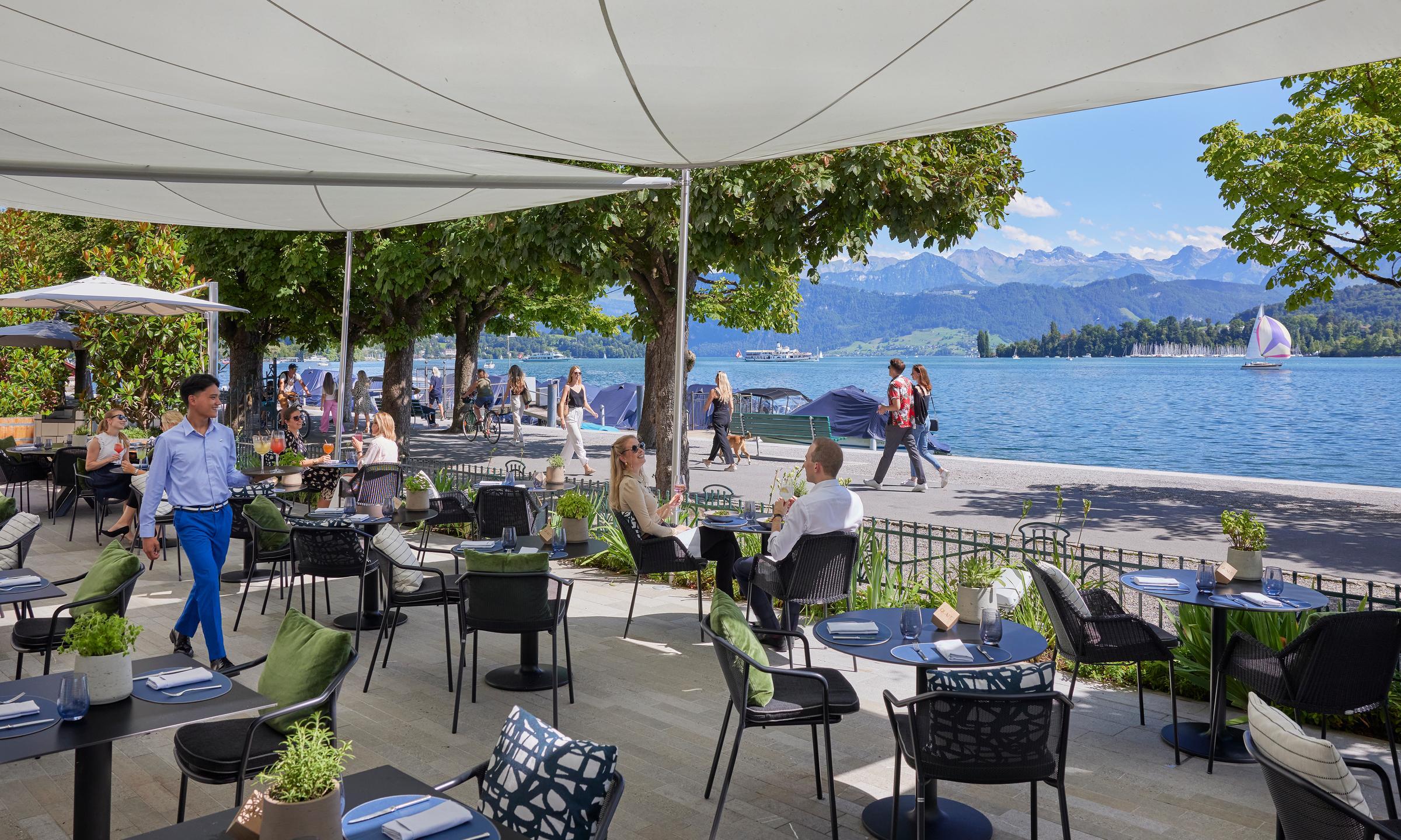 Das Quai 10 im Mandarin Oriental Palace Luzern bietet moderne internationale Küche mit Blick auf den Vierwaldstättersee in elegantem Ambiente.