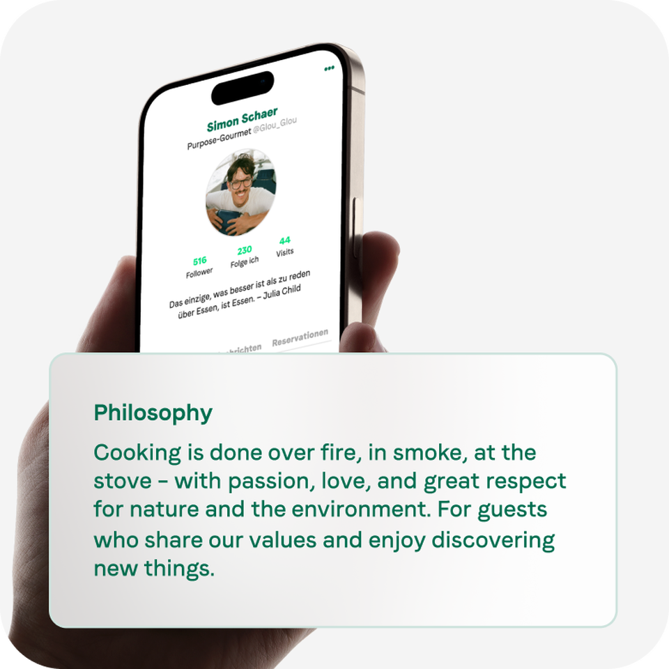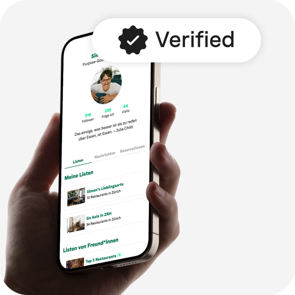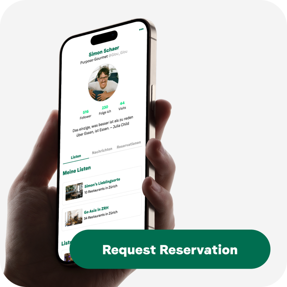 All restaurants with dinner service and their own website in Zurich, Bern, or Basel are automatically included on the platform. This way, you’re found by users with a matching taste profile – all without technical integration.